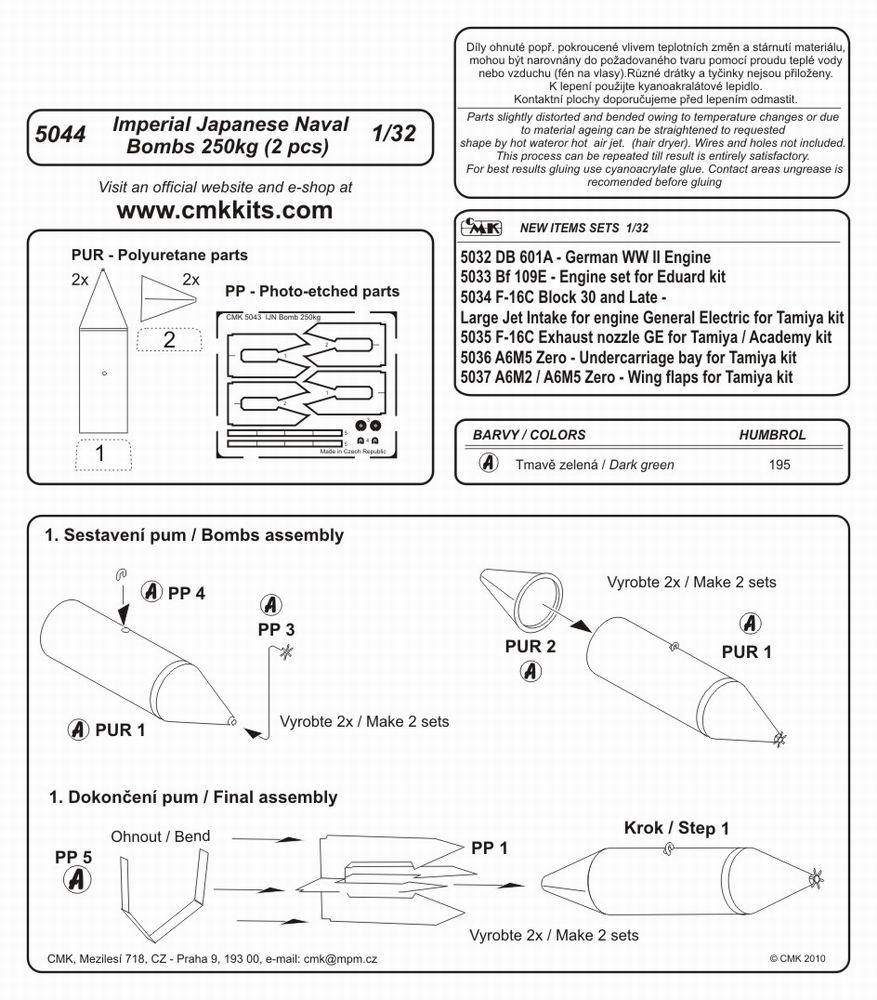 Odlitky a fotoleptané díly japonských 250kg pum (2 ks) používaných letouny námořního letectva v období 2. sv. války.