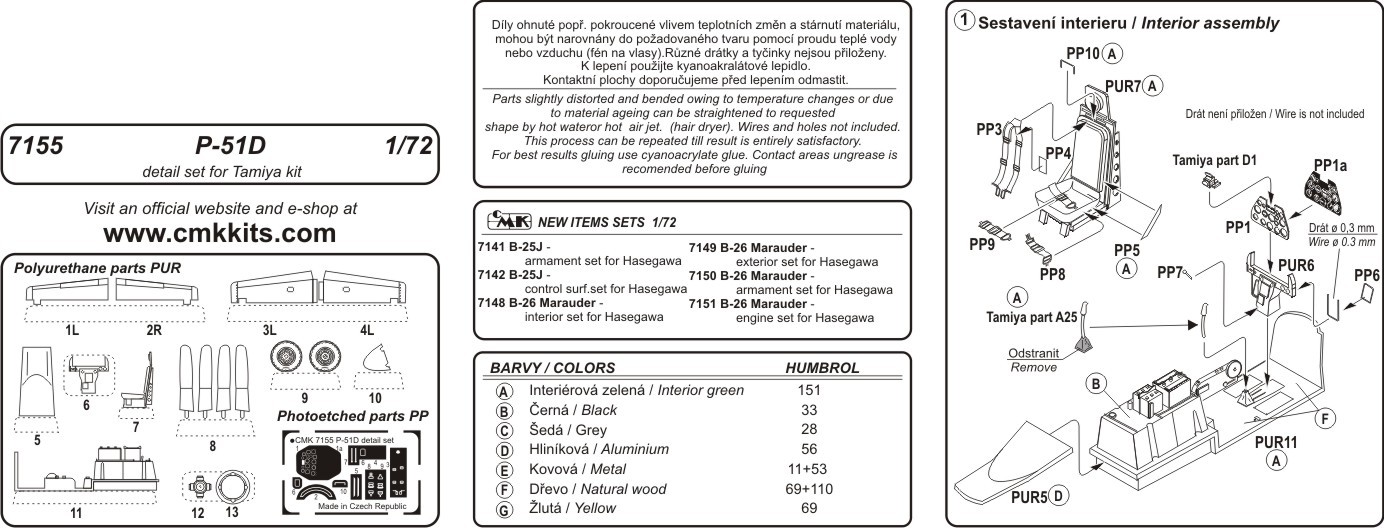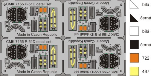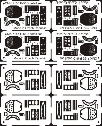 Obsahuje kokpit, hlavní podvozkové nohy, vrtuli, rozdělené výškovky a fotoleptané díly na americký stíhací letoun z 2. sv.v.