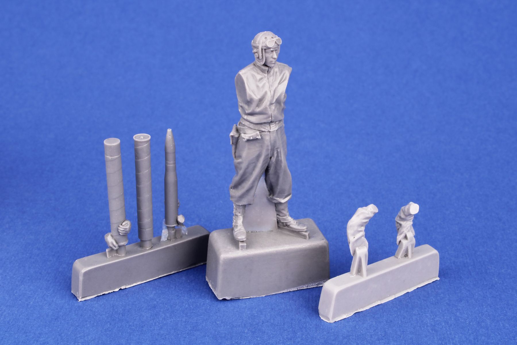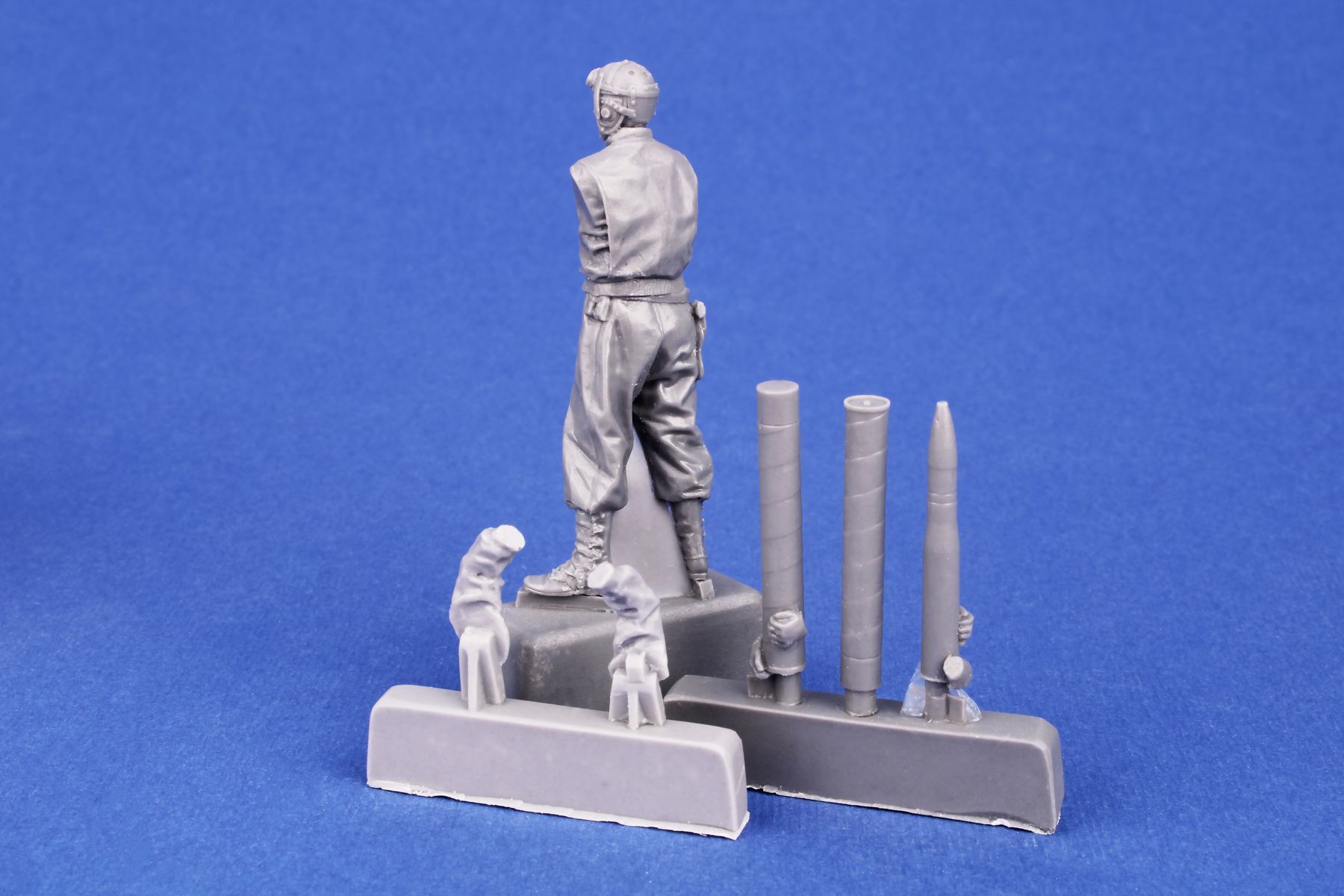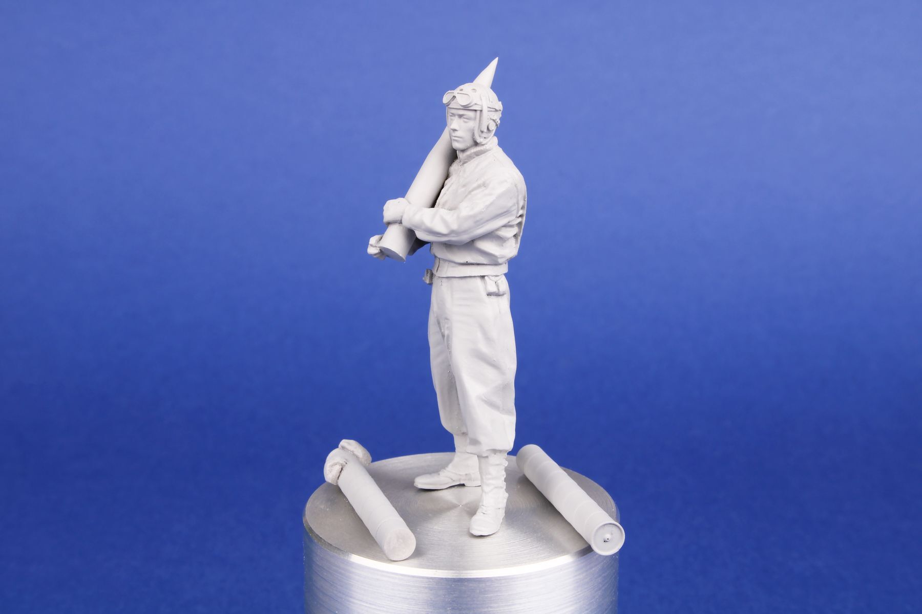 Breathtakingly rendered figure of a tank loader designed for the M36 Jackson Tank Destroyer. The loader, standing upright in a natural pose, holds a 90mm caliber round. The set comes with two types of the shell, the other is placed in a case.