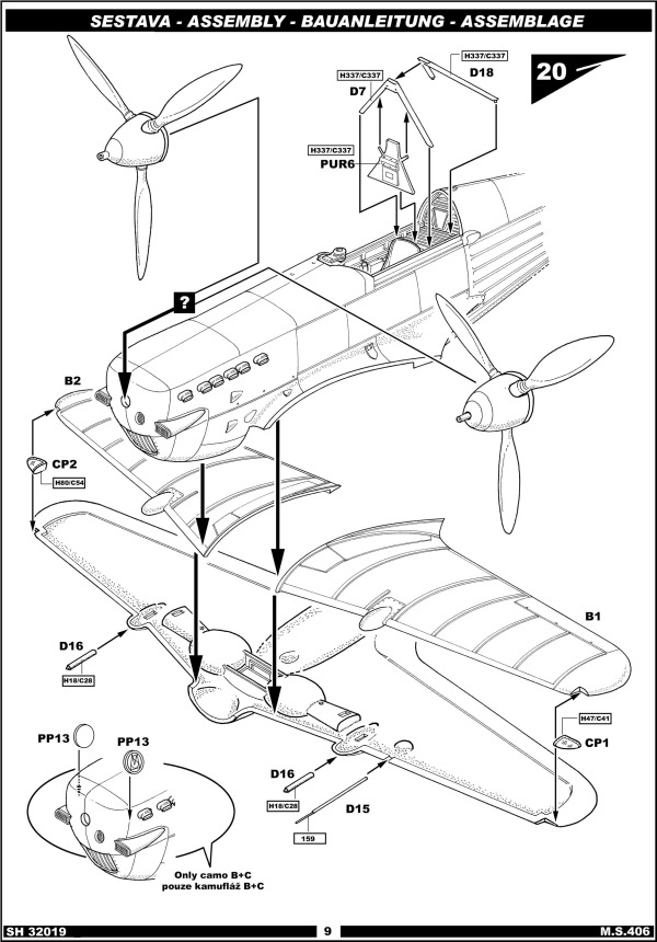 Stavebnici této velmi významné stíhačky v měřítku 1/32 vracíme do nabídky po delší době. Čtyři rámečky šedých plastových dílů a jednoho rámečku čirých dílů doplňují resinové díly a dvě planžety leptů. Obtisky nabízí tři stroje, dva francouzské, jeden z nich létal u polské jednotky a tak nese na bocích trupu polskou šachovnici. Třetím strojem je finský Morane, ozdobený zubatou tlamou.
